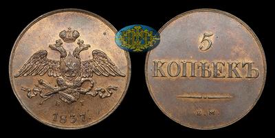 5 Копеек 1837 года, ЕМ КТ / Новодел