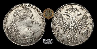 Реверс: Без точек по сторонам “ПОЛТИНА”. Крест державы украшен.