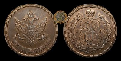 Аверс: Корона большая. Хвост орла растрепан. "ЕМ" большие.