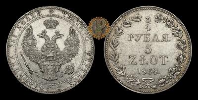 3/4 Рубля - 5 Злотых 1838 года, MW