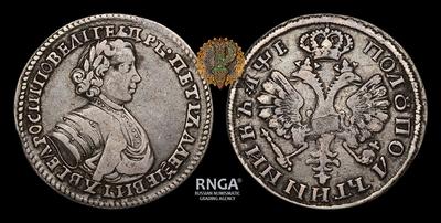 Полуполтинники петровской чеканки ввиду плохого качества металла, низкого уровня обработки штемпелей и некоторых особенностей производства тех лет исключительно редки в высокой степени сохранности.