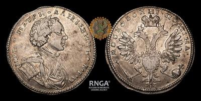 Полтина без даты (1710 год). Тип 1710 года, т.н. «Портрет с орденской лентой»