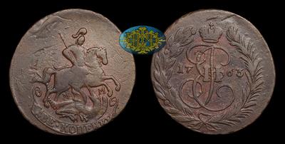 2 Копейки 1763 года, ММ. Тип 1763 - 1767 годов. Перечекан из 4 копеек 1762 года