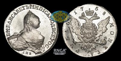 Рубль 1758 года, СПБ TI НК. Тип 1757-1761 годов. Портрет Т.Иванова