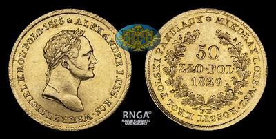Монеты этого типа чеканились в 1827 и 1829 годах. 50 злотых 1827 года из-за минимального тиража (299 штук) чрезвычайно редки и недоступны для большинства коллекционеров. Приобретение 50 злотых 1829 года поможет пополнить коллекцию монетой недостающего типа.