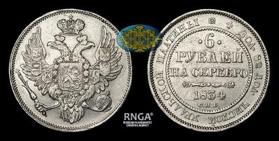 Платиновые монеты крупных номиналов 1834 года чеканки чрезвычайно редки. Официальный тираж каждого из номиналов составил всего 11 экземпляров, что подтверждается редкостью их встречаемости. В основном известны как новоделы. Степень общего износа и данные спектрального анализа предложенного экземпляра свидетельствуют о его безусловной подлинности и оригинальности изготовления именно в указанном на монете годе.
