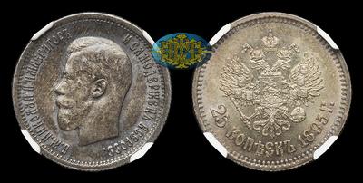 Роскошный коллекционный экземпляр. Легкий с переливом штемпельный блеск. Изумительная кабинетная патина, свидетельствуюшая о долгом коллекционном хранении. Более темная, серо-золотистая на аверсе, и более светлая серо-золотистая на реверсе. Великолепный прочекан и сохранность всех деталей рельефа, включая мелкие гербы в гербовой композиции. По нашему мнению, достоин более высокой оценки степени сохранности.