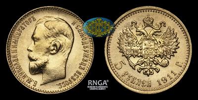 Самые редкие тиражные пять рублей времени правления Николая II. Отчеканено всего 100 011 штук.