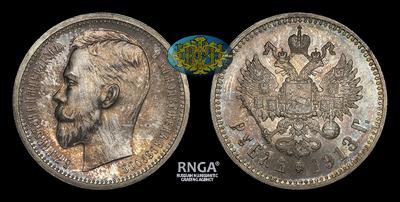 Один из самых малотиражных рублей времени правления Николая II. Общее количество монет с двумя вариантами гуртов составило всего 22 125 экземпляров.