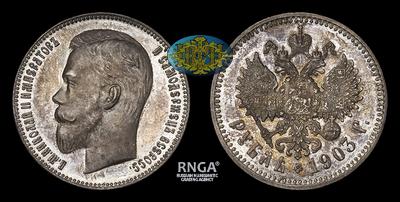Один из самых редких и малотиражных рублей периода правления Николая II. Тираж этого года составил всего 55 519 штук.