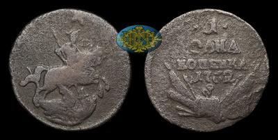 Копейка 1762 года. Тип 1761-1762 годов, т.н. "С военной арматурой". Перечекан на денге 1757-1760 годов
