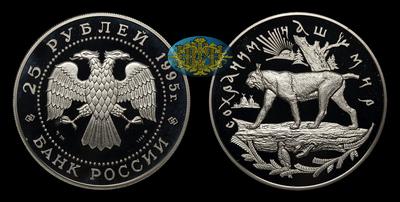 25 рублей 1995 года. Серия "Сохраним наш мир. Рысь"