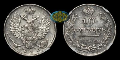 Редкая годовая разновидность. Первый год чеканки десятикопеечников образца 1810-1825 годов.