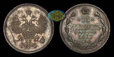 15 Копеек 1861 года, СПБ. Парижский Монетный Двор