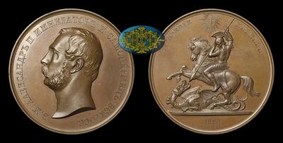 Несмотря на относительно невысокую оценку степени редкости R1 в каталоге М.Е.Дьякова (М.Е.Дьяков, Москва 2006 г. “Медали Российской Империи” Часть 5), представляет очень высокий коллекционный интерес. Единственный экземпляр, появившийся на открытых аукционных торгах как минимум за последние 50 лет.