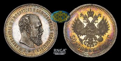 Самые редкие из 50 Копеек Александра III образца 1886-1894 годов. По официальной статистике Санкт- Петербургского Монетного Двора было отчеканено всего 1 002 экземпляра.