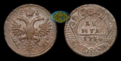 Денга 1730 года. Перечекан из копейки 1704-1718 годов