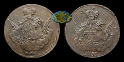 Копейка 1756 года, ММД. Тип 1755-1757 годов, т.н. "Барочная"