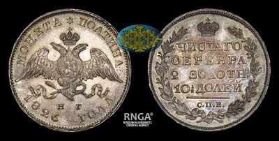 Довольно редкая годовая разновидность. Первый год чеканки полтин образца 1826-1831 годов.