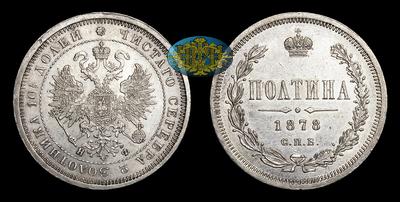 Полтина 1878 года, СПБ НФ. Тип 1859-1881 годов. Санкт-Петербургский монетный