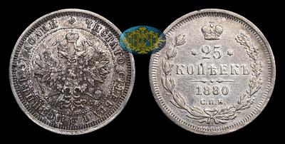 25 Копеек 1880 года, СПБ НФ. Тип 1859-1881 годов. Санкт-Петербургский