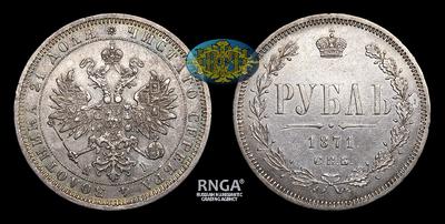 Рубль 1871 года, СПБ HI. Тип 1859-1881 годов. Санкт-Петербургский монетный двор