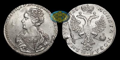 Тип 1725-1726 годов. Точки в начале и в конце круговой надписи. «Ц» в «ЦЕНА» с коротким хвостиком.