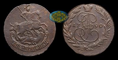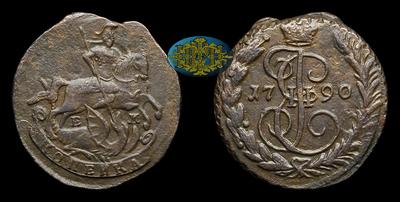Копейка 1790 года, ЕМ. Тип 1763, 1789-1791, 1794-1796 годов. Екатеринбургский монетный двор