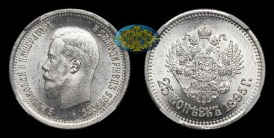 25 Копеек 1895 года, АГ. Тип 1895-1896, 1898-1911 годов. Санкт-Петербургский монетный двор