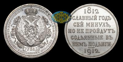 Рубль 1912 года, ЭБ. "В память 100-летия Отечественной войны 1812 года". Санкт-Петербургский монетный двор