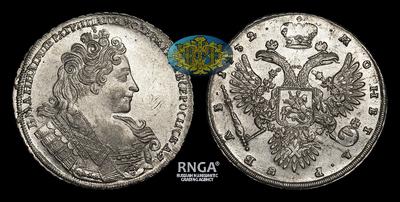 Аверс: Голова меньше. Лента на плече украшена одиннадцатью трилистниками. Лента на груди украшена тремя большими камнями и четырьмя жемчужинами. Лента снизу украшена четырьмя трилистниками. «IМПЕРАТРИЦА». Точки разделяют круговую надпись. Ничего в начале и конце круговой надписи.