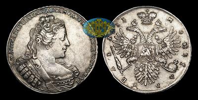 Очень редкая разновидность рубля 1733 года по деталям портрета и оформлению круговой надписи аверса. Известен в сочетании только с одним вариантом реверса. Из всех описанных рублевиков 1731, 1733-1734 годов чеканки единственный с заклепками в фестонах. Помимо прочего, круговая надпись аверса заканчивается двоеточием, тогда как на остальных рублях этого года точкой или ничем. Не меньшего внимания заслуживает центральная корона на реверсе. Подобная форма короны (являющаяся обычный для большинства рублевиков 1730-1731 годов) после 1731 года не встречается. Следует заметить, что из двух наиболее часто используемых каталогов рубль данной разновидности описан только в каталоге М.Е.Дьякова (M.E.Diakov, Moscow 2001 “Russian coins of Anna and Ioann III”), с определением “RARE PORTRAIT” (редкий портрет).