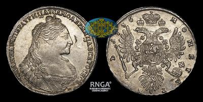 Рубль 1736 года. Тип 1734-1737 годов, т.н. "Лошадиный профиль"