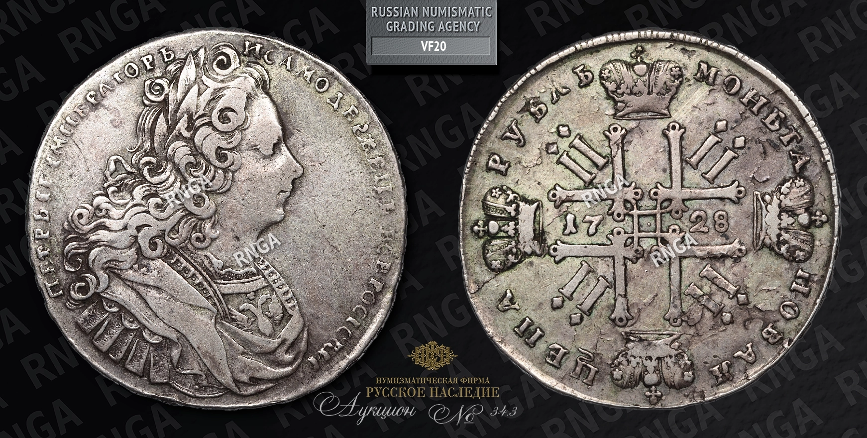 Аверс: Портрет 1727-1729 годов. Корона над орлом.